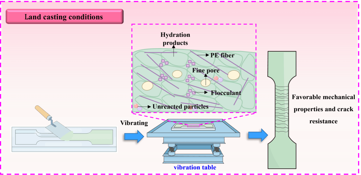 图1. 不同浇筑工况下 UHVFA-ECO-ECC 力学损伤机理对比: (a) 水下浇筑;(b) 陆上浇筑。