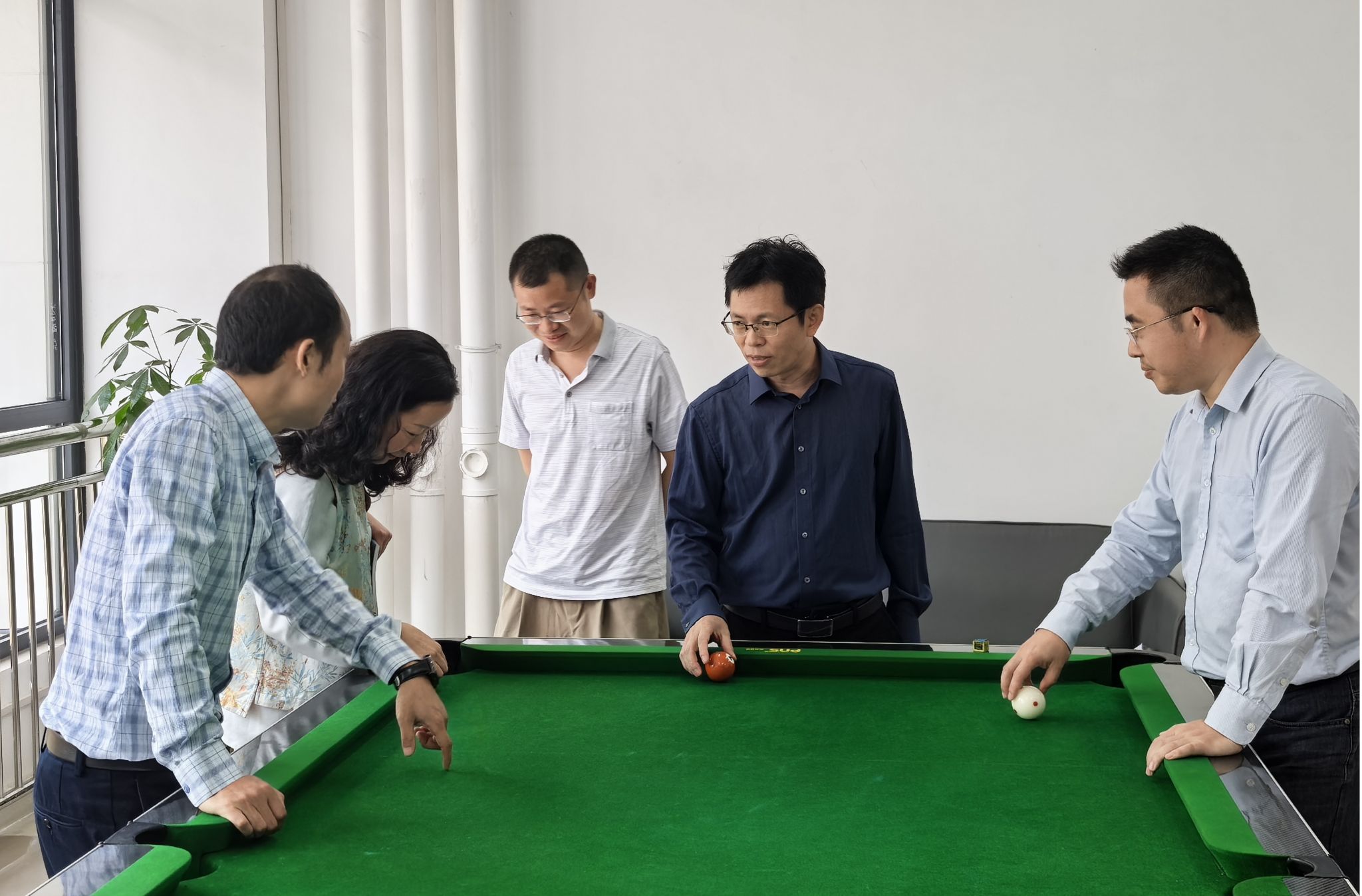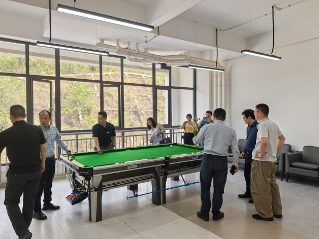 交流结束后,韩国a片拓岗小组还参观了企业休息娱乐室,郭栋副总经理介绍,台球面板是自己公司生产的产品,做到生产应用与检验实践双结合。